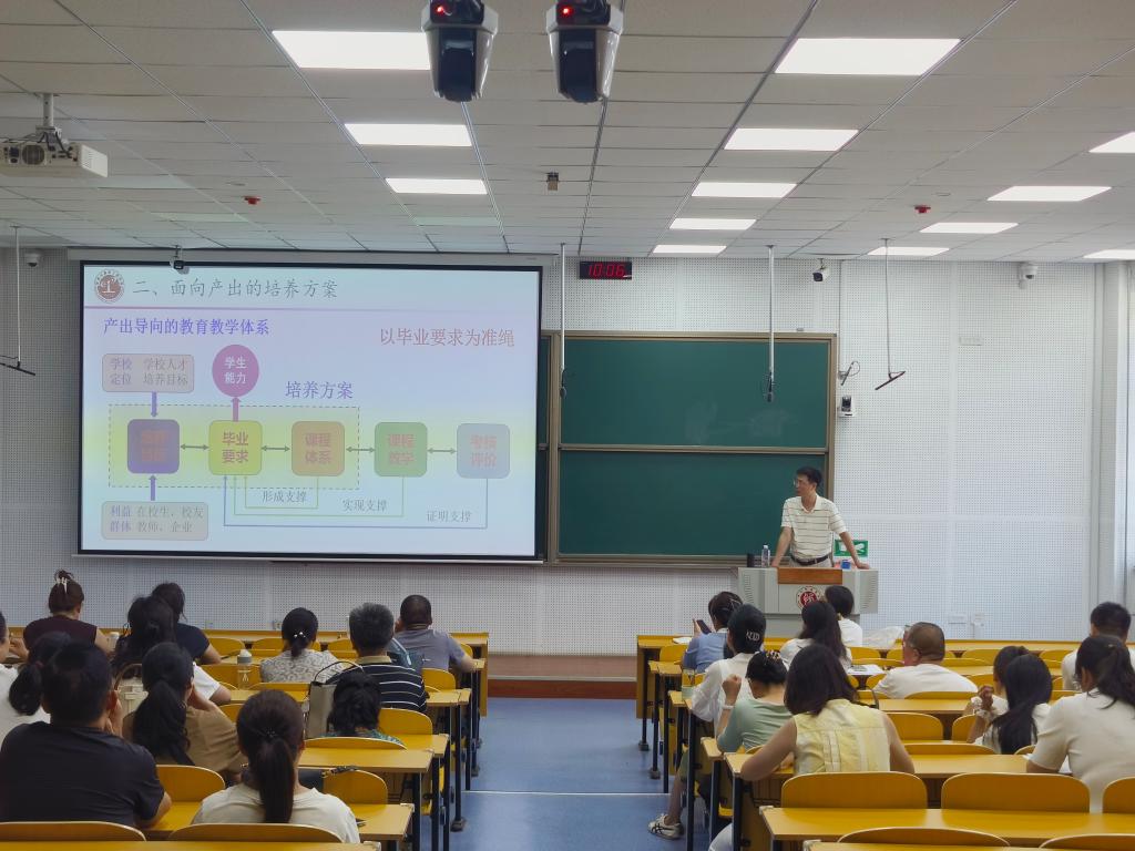 为有效推进我校本科教育教学审核评估工作,2024年7月17日上午,我校邀请中北大学陈友兴教授来我校明理楼1-1作题目为《面向产出的培养方案和教学大纲设计》的主题讲座。本次活动由教务部主办、电子系承办。教务部部长胡志军、电子系副主任任国凤教授以及电子系、计算机系以及其他校非师范理工科专业全体教师参加讲座。